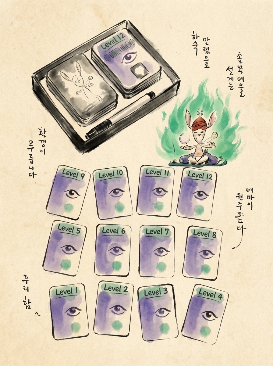 더마인드 오리지널에 비해 달라진 점들이 꽤 있네요. 가장 크게 느껴지는건 슬리브 씌우면 뚜껑도 안 닫히던 박스가 넉넉하게 커진 점이 좋은 것 같습니다. 100장의 숫자카드 대신 50장으로 줄은 것도 괜찮은 점 같고요. 어차피 재미는 비슷한데 100장은 섞느라 바쁘다는 느낌이었거든요. 내려놓을 때 뒷면으로 놓는 점과 예언자 시스템도 크게 바뀐 부분입니다. 사실 앞으로 내려놓는게 더 심플하고 좋은 것 같긴 한데, 한 라운드에서 목숨 여러개 잃는 대신 실패하면 목숨 하나 잃고 라운드 다시하게 한 시스템에는 뒷면이 어울리는거 같네요. 그게 룰을 더 깔끔하게 만들어주는 느낌이 있고요. 수리검 없어진 것도 더 깔끔해졌다는 느낌이 듭니다. 근데 아직 플레이는 못해봤네요. 플레이를 좀 더 해보면 감상이 바뀌려나 0