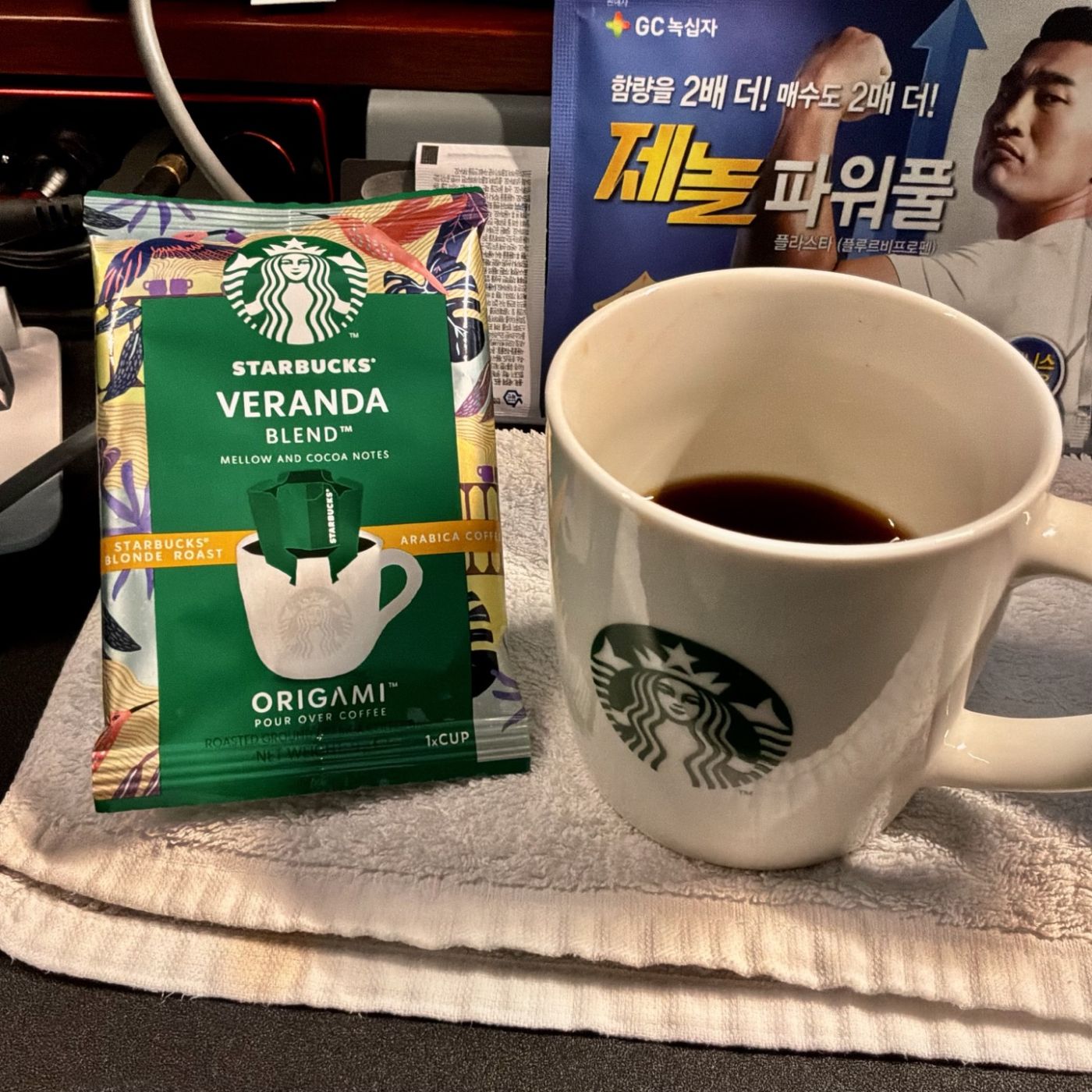 전에 한 번 소개했지만, 스타벅스에서 가장 스타벅스 같지 않은(?) 커피로 꼽힌 적도 있던(요즘은 강배전 아닌 것들이 좀 늘어난 것 같지만?) 스타벅스 베란다 블렌드의 오리가미 드립백 버전입니다. 맛은 특별한 것은 없는데, 오리가미 버전은 너무 양이가 적습니다. 원두 9g. 푸어오버 140ml권장. 이걸로 양키 스타일(?)로 큰 머그에 호쾌하게(?) 마시려면 3개는 써야 하는데. 일본식 커피 특인 것도 같고. 우리나라도 스타벅스 진출 전 일본 찍고 커피 전문점들 들어왔을 때는 한꺼번에 많이 마시지는 않은 것도 같고. 1