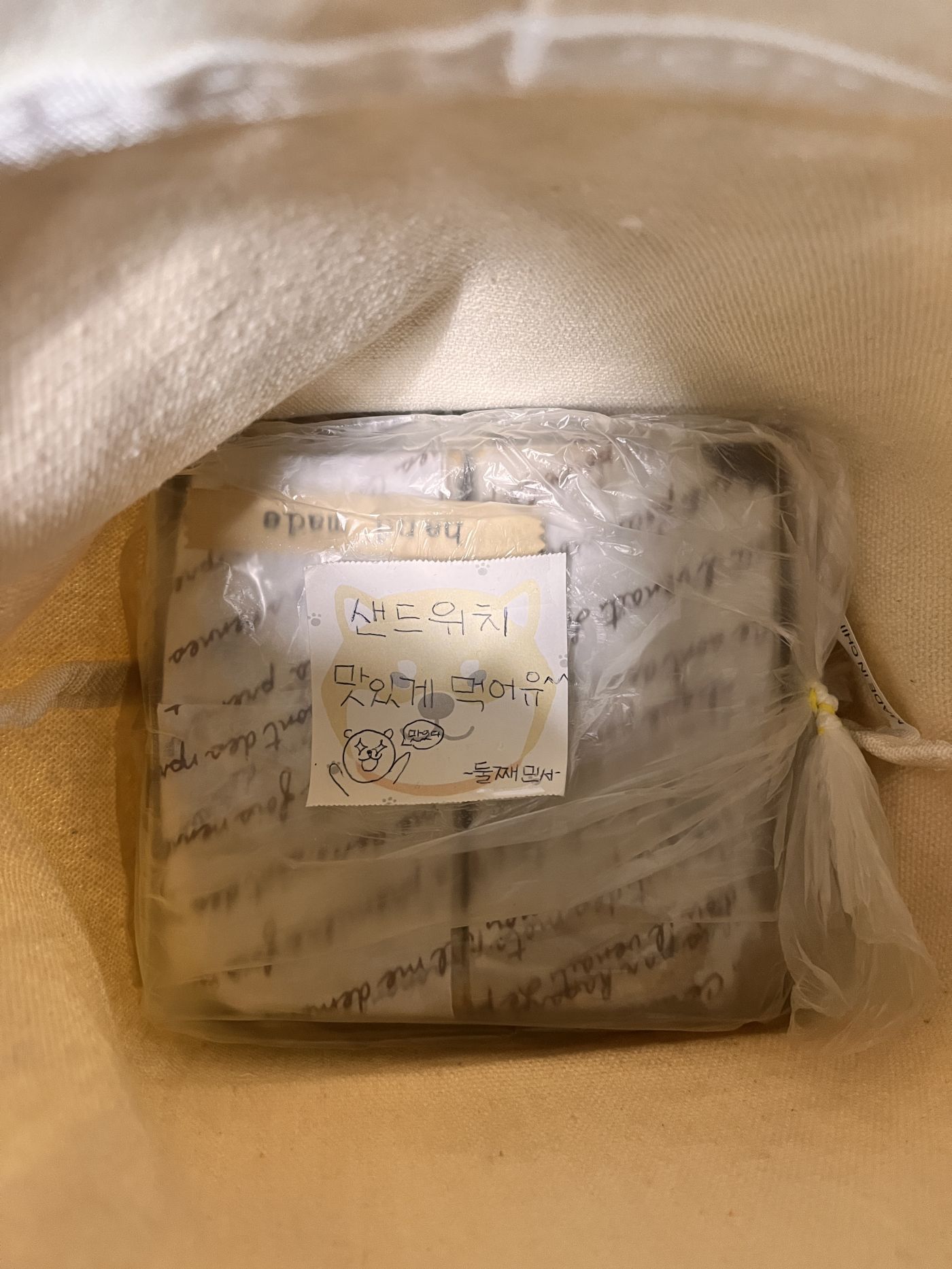 어제 저녁 와이프가 샌드위치를 하나 사왔습니다. 내일 가져가라고 하길래 “알았어“ 하고 말있는데 언제 들었는지 아침에 식탁에 보니 아빠 먹으라고 저렇게 도시락에 싸서 맛있게 먹으라는 메모까지 하 ㅎㅎ 아빠는 심쿵합니다. 아흑 넘 좋아용^^ 이런맛에 딸래미랑 사나 봐요 ㅎㅎ 잠자고 있는 딸 뽀뽀해주고 출근합니다. 6