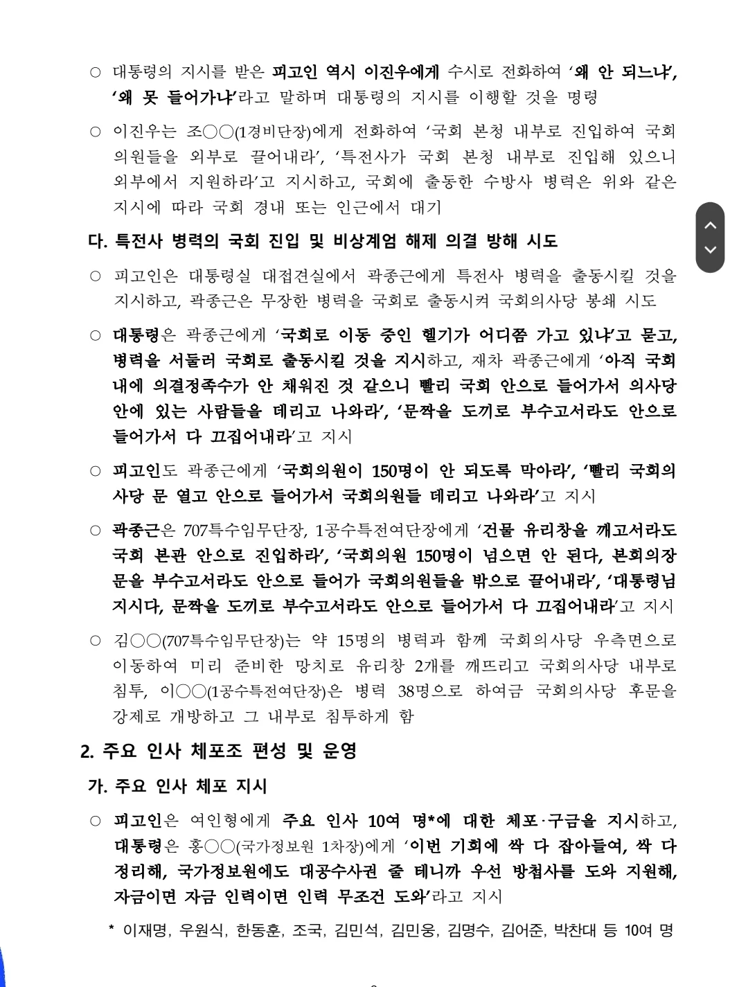 “조청장, 국회 들어가려는 국회의원들 다 체포해, 잡아들여, 불법이야, 국회의원들 다 포고령 위반이야, 체포해”