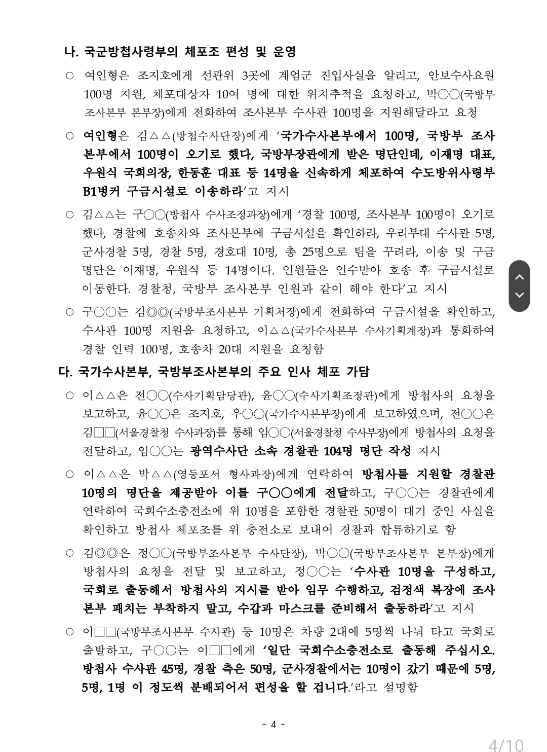 선관위 직원들 체포조가 있었다는 내용이 공개되었을 때, 전문가들이 예상하기로 그냥 보통 일반인에 가까운 직원들은 눈가리고 끌려가기만 해도 멘붕상태에 빠질거고 그 공포감으로 인해 부정선거에 대한 거짓 자백을 이끌어내려는 용도였을 것이다 라는 말들이 있었는데