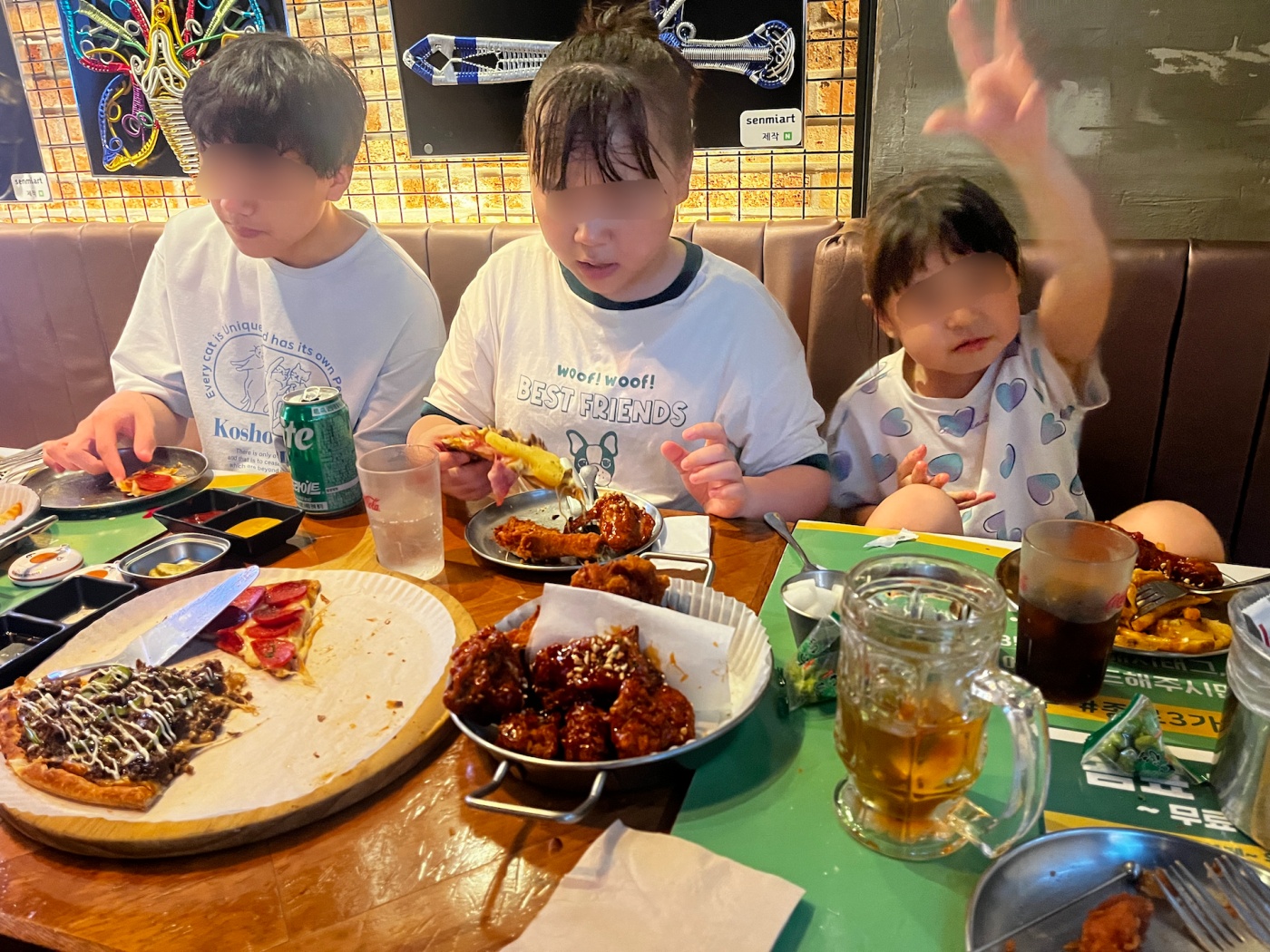 금요일 저녁이면 가족이 모여 보통 관례적(?)으로 치킨과 피자를 시킵니다. 아니면 가끔 외식을 하기도 하고요 ㅎㅎ 후라이드 한마리 양념 한마리 피자 라지 두판 중2 아들 초5 초2 딸 이렇게 모여서요. 저는 치킨 두조각 피자두조각 맥주 500ml 딱 이거면 행복이더라구요. 더 먹고 싶은데 소화가 안되요 ㅠㅠㅠ ㅋㅋㅋㅋ 10