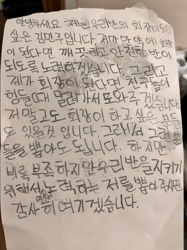 | Subject | 초3 딸내미가 반장 준비하면서 쓴 글입니다. |