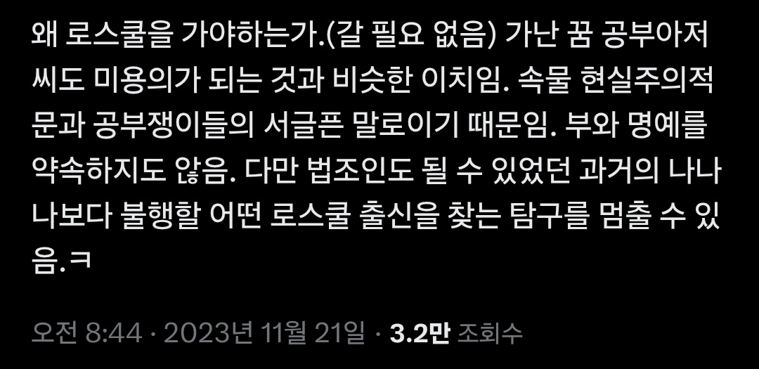 *주의 : 학벌주의에 민감한 한국 풍토상 내용이 재수 없어 보일 수 있음. 그러나 솔직히 씀. 제가 멍청이인 거 앎. 진실을 위하여! 내가 14학번인데, 그때 문과에서 명문대를 가기는 되게 어려운 일이었다. 특히 수능으로 명문대를 가려면 거의 틀린 문제 없이 다 맞아야 했다. 복잡하고 기기묘묘한 기출 문제들과, 꼬아서 내는 수학 문제들을 보다 보면 머리가 아프기 일쑤였다. 비명을 지르며 "대체 어떤 천재들이 연고대를 가는 거야!" 라고 외치고는 했다. 그럼 당시 아버지는 묘한 표정으로 나를 (조금 실망하며) 바라보다가 돌아가고는 했는데, 하여간 그때는 내가 연고대를 갈 가능성이라고는 전혀 없어 보였다. 항상 몇 문제 차이로 컷트라인을 빗겨갔기 때문이었다. 하지만 실전에서 강한 타입인데다, 예상 외의 갑작스러운 논술 실력 상승, 논술 우선선발 전형 합격 등의 행운이 겹쳐 드디어 명문대 중의 명문대라는 고려대(^^7)에 입학할 수 있었다. 역시 세계 최고의 대학. 고려대는 눈부신 안암에서 빛을 내며 나를 반겨주었다. 드디어 세계 최고의 인재들과 어깨를 나란히 할 수 있다니 기분이 끝내줬다. 바로 입학 전 미리 캠퍼스 투어를 하고 영어 수업을 하는 코스를 등록했다. 열심히 살면 사는 대로 대가가 주어지는 세계에 드디어 들어온 거 같았다. 그런데 웬걸. 영어 토론을 하다가 순간 떠오르는 생각에 창의적으로 "이건 죄수의 딜레마와 관련이 있어." 라고 했더니, 나에게 그 이야기를 들은 남자아이가 다른 조와 활동을 할 때 나를 두고 뒷담화를 하는 게 들렸다. "이게 무슨 죄수의 딜레마래." 그런데 내 기억으로 몇 년 후, 나는 다른 외국 학자가 그것을 죄수의 딜레마와 관련시켜놓은 것을 어떤 교재에서 확인하게 된다. 너무 열받았다. 하여간. 그런데 꼭 다 날 싫어한 건 아니었다. 그렇게 그때까지 공부에 끙끙거린 것 치고, 갑작스럽게 나는 '학구적인' 교수들의 눈에는 띄었고 우등생이 되었다. (간혹 자기 고집이 강한 사람은 나를 엄청 싫어하긴 했다.) 특히 많은 독서 경험을 바탕으로 <사고와 표현> 시간에 여러 내용을 발표하고 있노라면 '우리 과 지식인' 이라는 별명이 따라왔다. 지금도 동창들에게는 '깨인 사람이었다' 같은 이상한 평을 듣고 있으니 말 다 한 셈이다. 너무도 당황스러웠지만, 대학의 다른 친구들은 나에게 별다른 지적인 도움도 자극도 주지 못했다. 그들에게는 "공부를 하고 싶어" 같은 표정을 하면 이상한 안개 같은 표정이 나오고는 했다. "같은 등록금을 냈으니 더 많은 강의를 듣는 게 이득이지." 라는 내 말에 사교성 좋은 과 대표는 '아. 알겠어. 언니 이상한 사람.' 같은 표정으로 웃으며 나를 존중한다는 표시를 억지로 해보였다. 이상하다. 왜 이러지? 천재들이 다닐 거만 같았는데. 특히 다들 묘하게 '차분'한 것이 인상적이었다. 차분했고, 교수님 말에 별 이의가 없었으며, 공부를 할 때 전혀 그 공부에 목적이나 의의를 두지 않았다. 내가 법학통론 교수님을 끙끙거리며 짝사랑하는 동안, 과에서 나의 이미지는 점점 독특해졌고 그럼에도 고려대(^^7) 특유의 학풍 덕분에 질투를 받거나 이상하게 보이기보다는 '우리 과 똑똑한 언니'라는 취급을 받게 되었다. 누구든 나랑 이야기하면 나의 지성을 느꼈고, 내가 다르다 느꼈으며, 수업 중 교수님의 질문에 대답하는 나의 말들을 두고 친구들은 '어떻게 그렇게 아무도 생각 못한 걸 대답하냐' 라고 말했다. 나는 할말이 없었다. ('당연하잖아' '써있잖아' '그냥 그게 그거잖아' 같은 말을 할 수는 없으니까.) 대부분의 수업은 1회독도 하지 못했다. 나는 한 교수가 평생을 바쳐 이뤄낸 학업 업적을 한 수업에 다 읽고 이해해내라는 게 어이가 없었다. 읽다 보면 시험 시간 전까지 책을 다 읽을 수가 없었다. 그래도 A 이상은 꼭 나왔다. 논술형 문제가 섞이면 A+가 쉽게 나왔다. 가끔은 내용을 전혀 이해하지 못하고 쓰는 느낌으로 답을 썼는데 그래도 점수가 괜찮았다. 간혹 형식논리학의 어려운 논리 문제 같은 함정이 나왔지만, 시험 현장에서 갑자기 빨라지는 내 두뇌 회전 덕에 위기를 통과하고는 했다. 당시 나의 꿈은 '조금 이 실망스러운 학교를 떠나 하버드를 가면 더 좋은 강의를 들을 수 있지 않을까 하는 것'이었다. 그러기 위해 학점을 관리했는데, 어떤 친구가 '올 A+이 아니면 하버드는 꿈도 못 꾼대.' 라고 하기에 순진한 나는 바로 낙담했다. 그리고는 '설마 대학이 이 수준일까? 고려대라 그런 거 아닐까? 연세대로 옮길까?' 를 고민하거나, '서울대를 못 가서 내가 학문다운 학문을 하는 친구들을 못 만나나.' 라고 생각했다. 항상 안개에 낀 느낌이었다. 아이들과 밥을 먹으면 형식적인 대화를 했고, 당시 유행하는 아이돌 이야기를 꼭 했다. 서로 옷이나 화장에 대한 칭찬을 했고, 알고 보면 다들 집안이 좋았다. 서로 어느 정도 이상은 가까워지지 않으려 노력하는 느낌이었다. 그나마 페미니즘 열풍, 일베 논란 같은 것이 찻잔 속 태풍이라면 태풍이었지만 그마저도 우리 과에서는 잘 지나갔다. (일베를 하는 아이랑도 그냥 다들 문제 없이 지냈고, 남자아이들이 단톡에 섹드립을 쓰면 내가 혼냈고, 그렇다고 여자아이들이 이상한 