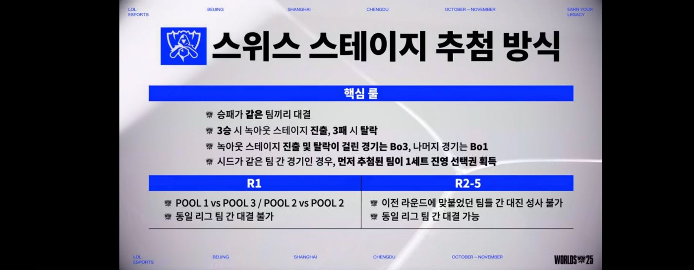2025 리그 오브 레전드 월드 챔피언십 스위스 스테이지 1라운드(중국,베이징 Smart Esports Center,25.20버전)