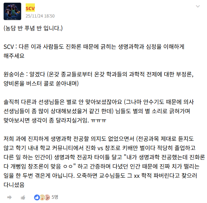 뭐 그 진화론이 이기면 이 배틀 끝날꺼냐...