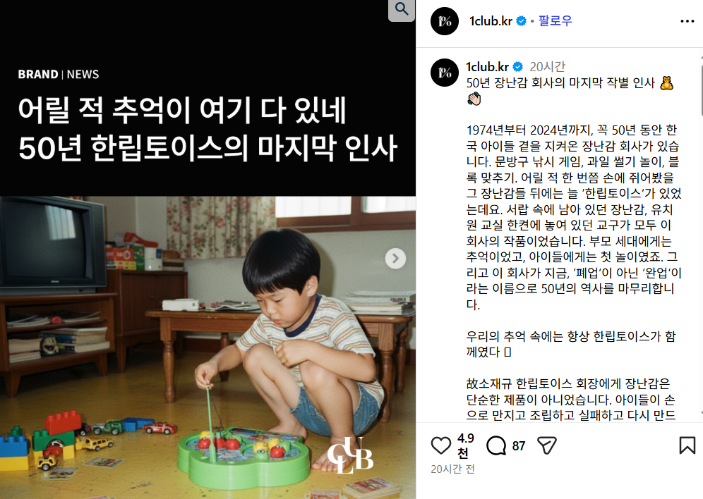 오늘 인스타에서 우연히 한 장난감 회사의 폐업 소식을 접했습니다.