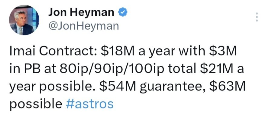 Subject   [MLB] 이마이 타츠야 3년 63M 휴스턴행