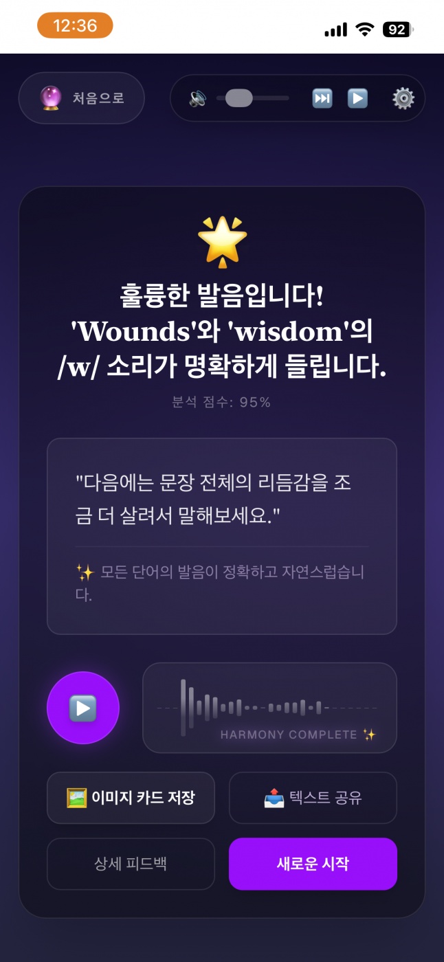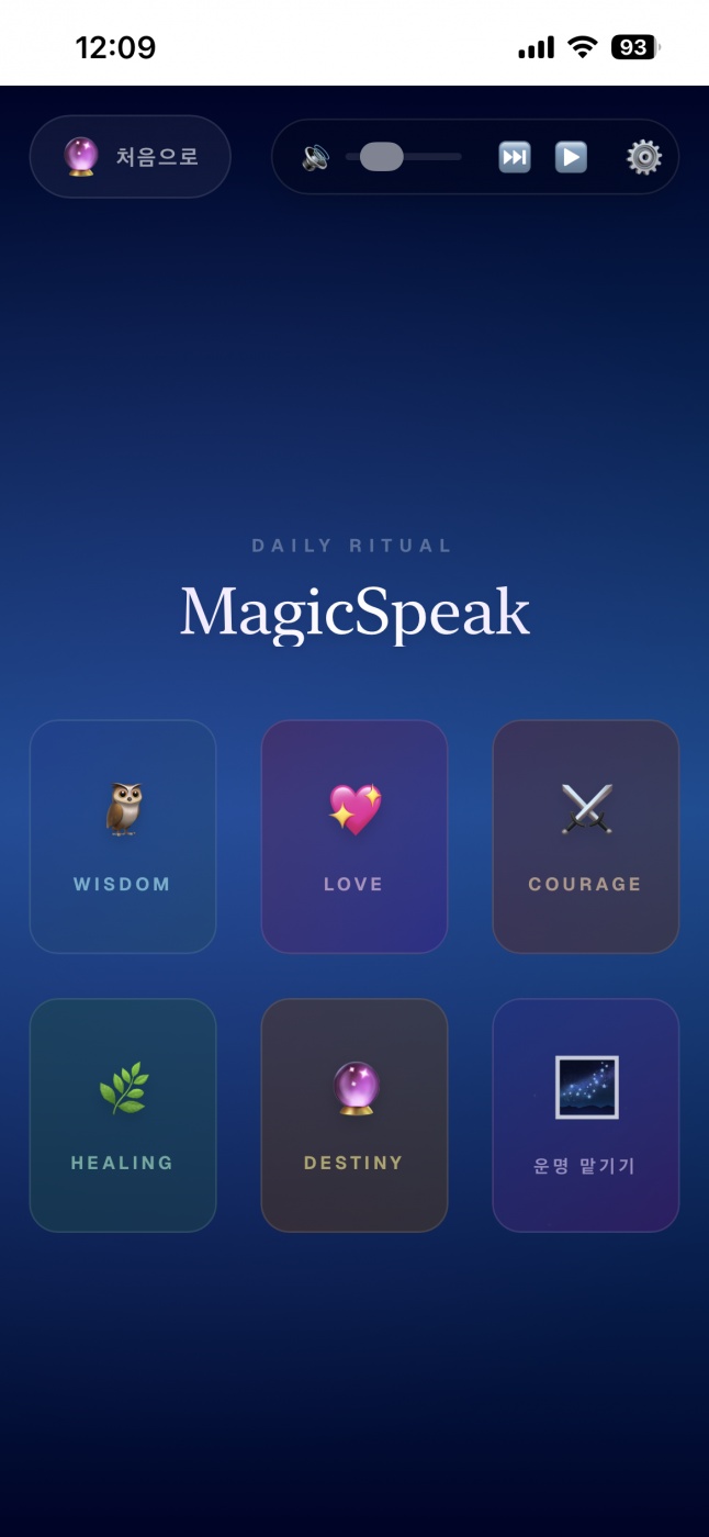 타로로 영어 스피킹 연습하는 사이트 만들어봤습니다. ㅎㅎㅎ 매일 카드 뽑아서 그 테마 문장 따라 말하면 AI가 한국어로 발음 피드백 + 내 목소리 에코 들려주는건데요 ㅎㅎ WISDOM 뽑으면 명언 따라 말하게 되고 LOVE 뽑히면 로맨틱한 거 나오고 일단 개인은 10회 제한을 두고 무료로 풀긴햇는데 ㅎㅎ 제꺼 제미나이 키를 사용하고 있거든요. https://magicspeak.vercel.app/ 0