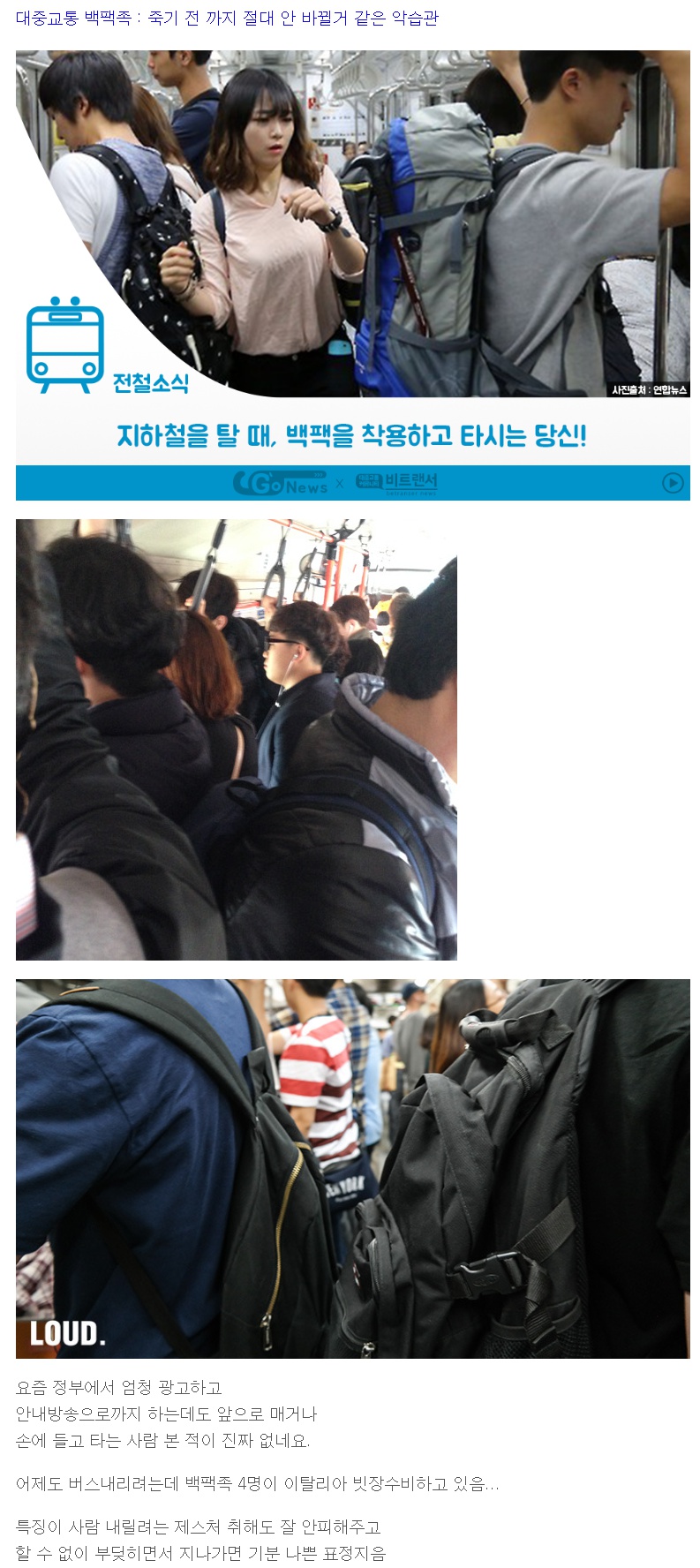 Subject   대중교통 백팩족 : 죽기 전 까지 절대 안 바뀔거 같은 악습관.jpg