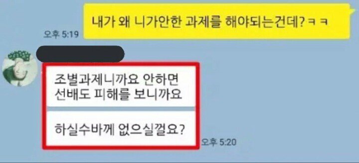 졸업반이었죠. 취업도 확정 되었겠다. F만 아니면 상관없기도 했고 그 시절엔 취업했다 그러면 교수님들이 출석일수가 모자르거나 시험을 안봐도 레포트로 퉁쳐주곤 했어요. 물론 21년짜리 양주 한병을 바쳐야 했지만... 어쨌거나 말년병장으로 지내고 있는데 같은 조원이었던 후배가 딱 저라고 나오더군요. 뭐... 교수님한테 면접보러 가야된다고 말씀드리고 걍 그 수업 던졌죠 뭐. 째라면 째주는게 예의 0