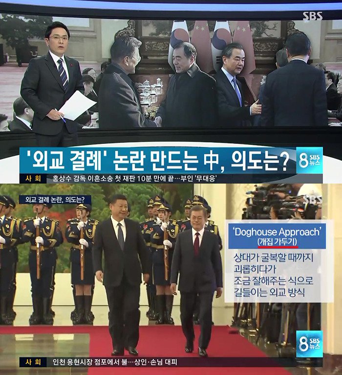 차관보가 영접나옴, 왕이 외교장관이 문재인 대통령 악수하며 팔 툭툭 침 =
