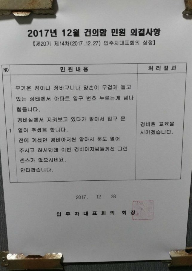 어느 아파트의 민원