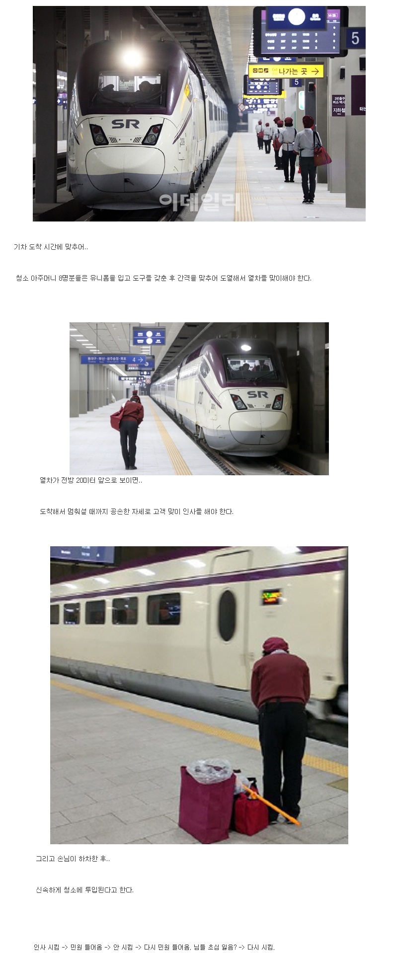 | Subject | SRT 청소 아줌마들이 인사하는 시간.JPG |