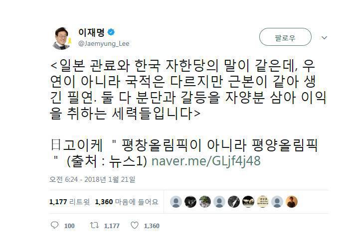 28475 이재명 트위터.jpg 2 김치찌개 18/01/23 2722 0