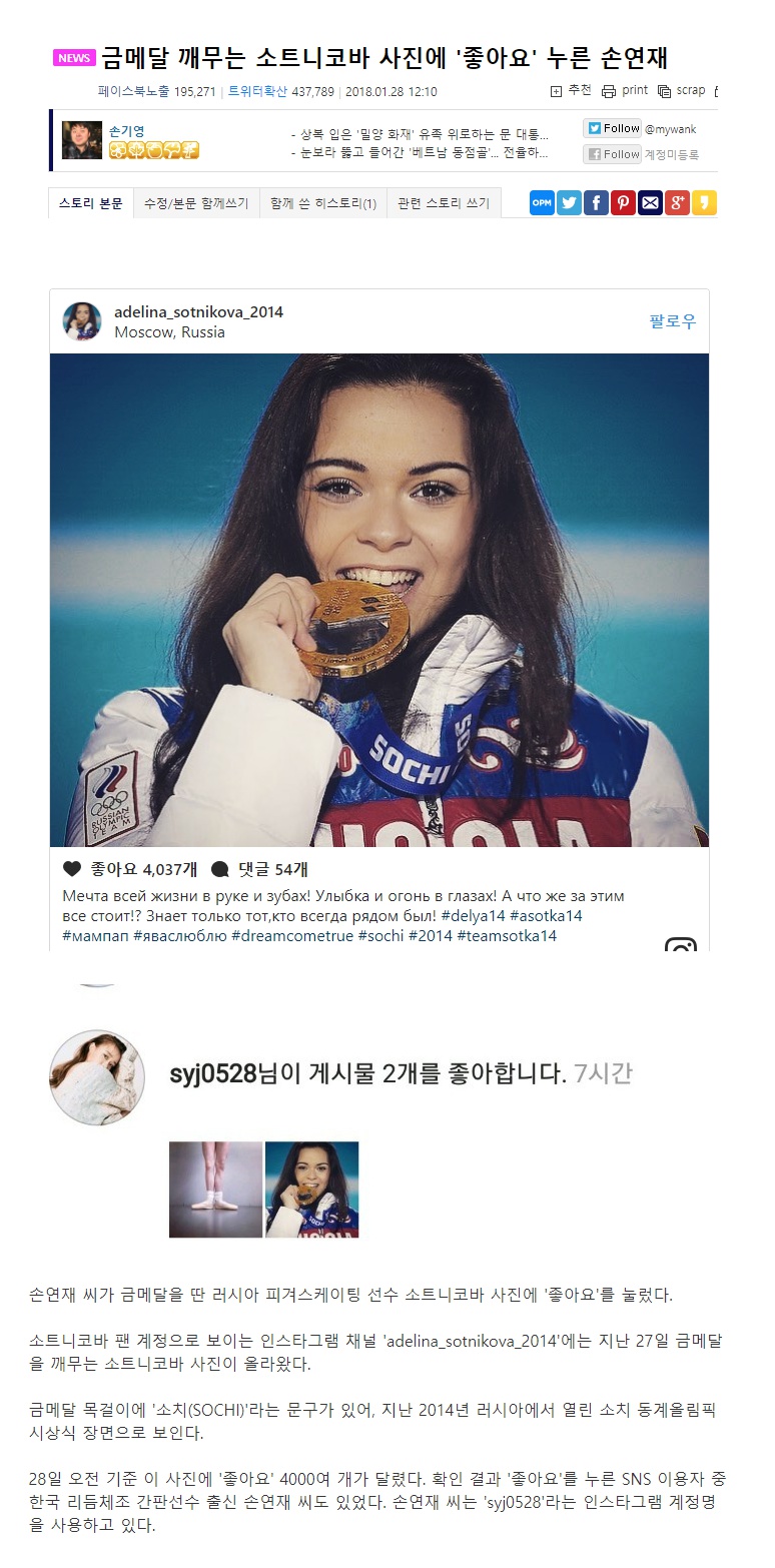 | Subject | 구설수에 오른 손연재 인스타.jpg |