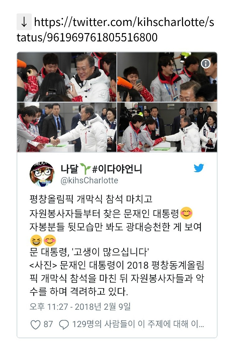 | Subject | 개회식 끝나고 자원봉사자 찾아간 문재인 대통령.jpg |