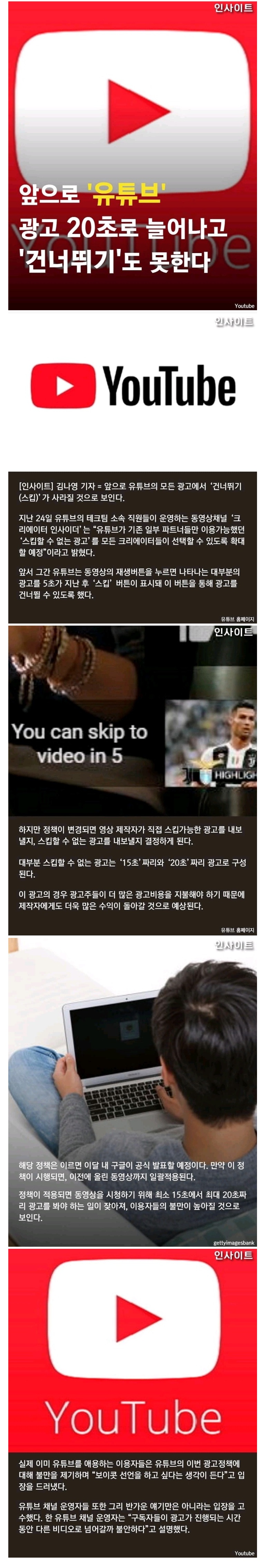| Subject | 앞으로 `유튜브` 광고 20초로 늘어나고 `건너뛰기`도 못한다.jpg |