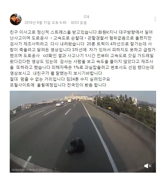Subject   25톤 트럭에 뛰어든 남자, 트럭 운전사를 기소한 검찰.jpg