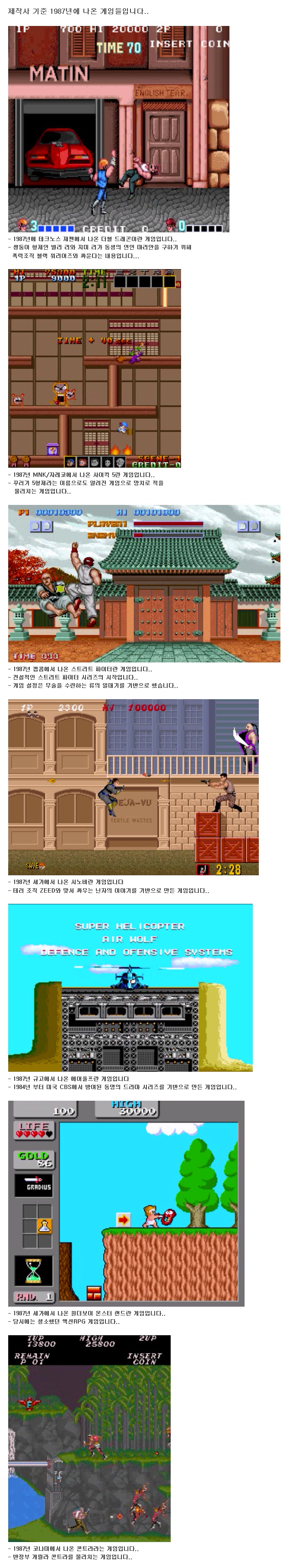 | Subject | 오락실이 자리를 잡고 점점 다양한 게임이 나오던 시절(1987년) 게임.jpg |