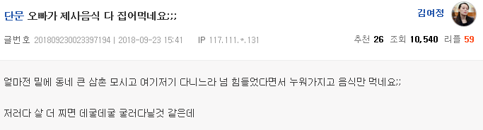 Subject   오빠가 제사 음식 다 집어먹네요 ㅡㅡ