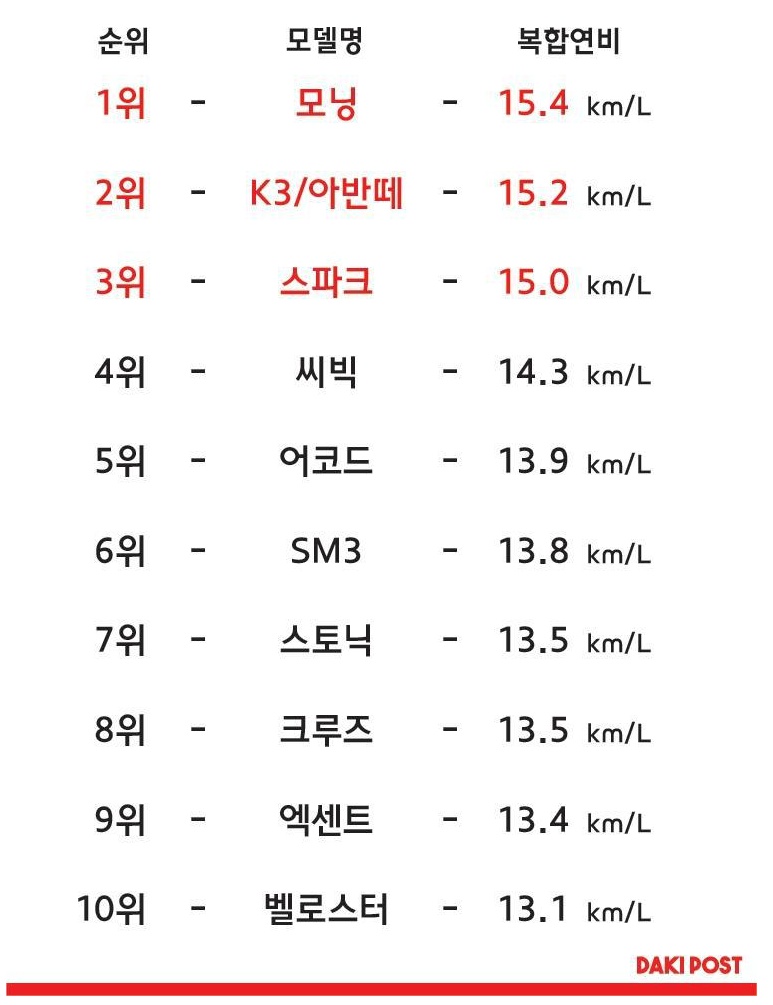 | Subject | 국내에서 가장 연비가 높은 가솔린 모델 Top10 |