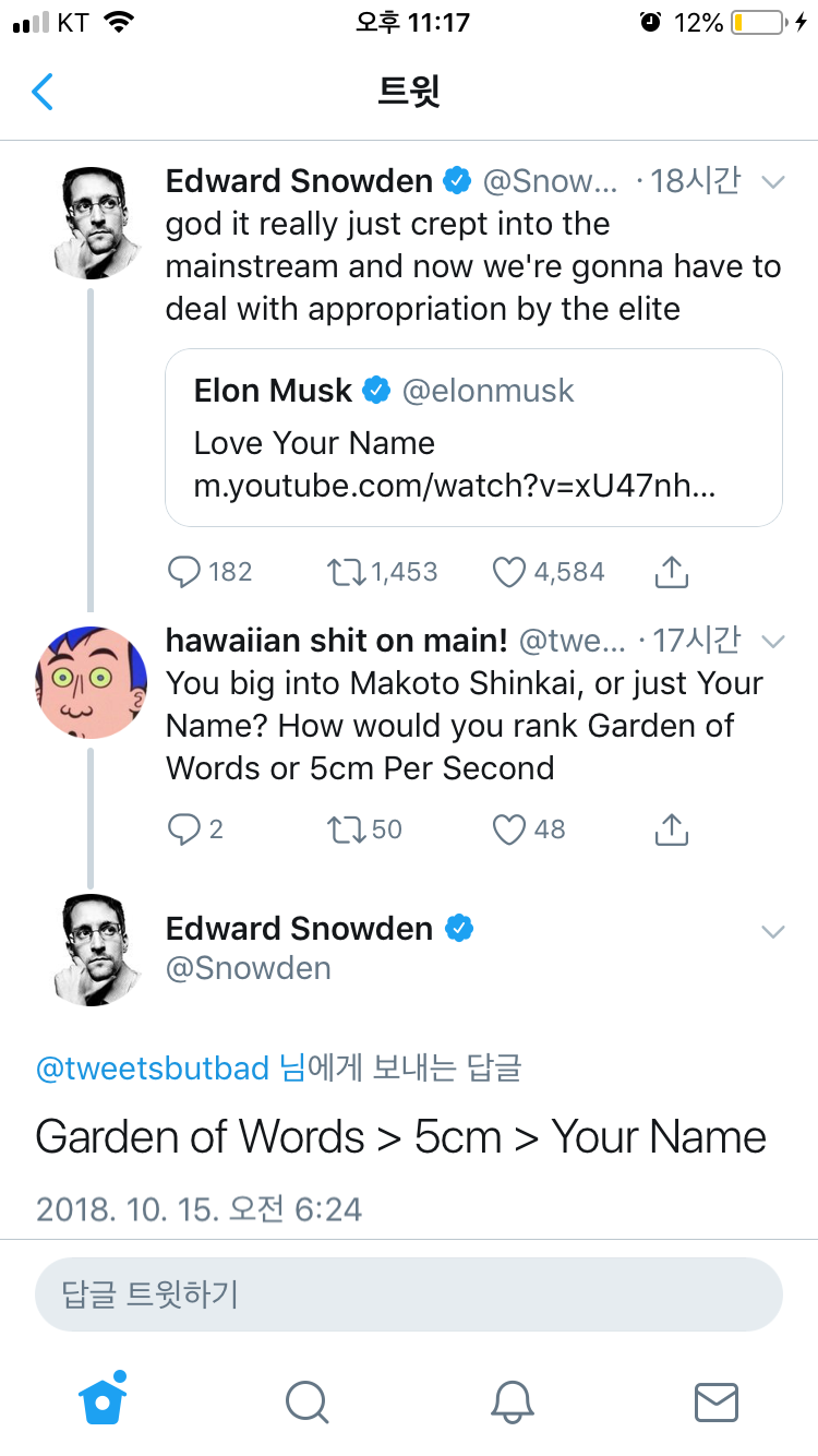 Subject   엘런 머스크 vs 에드워드 스노든(오덕 대결)