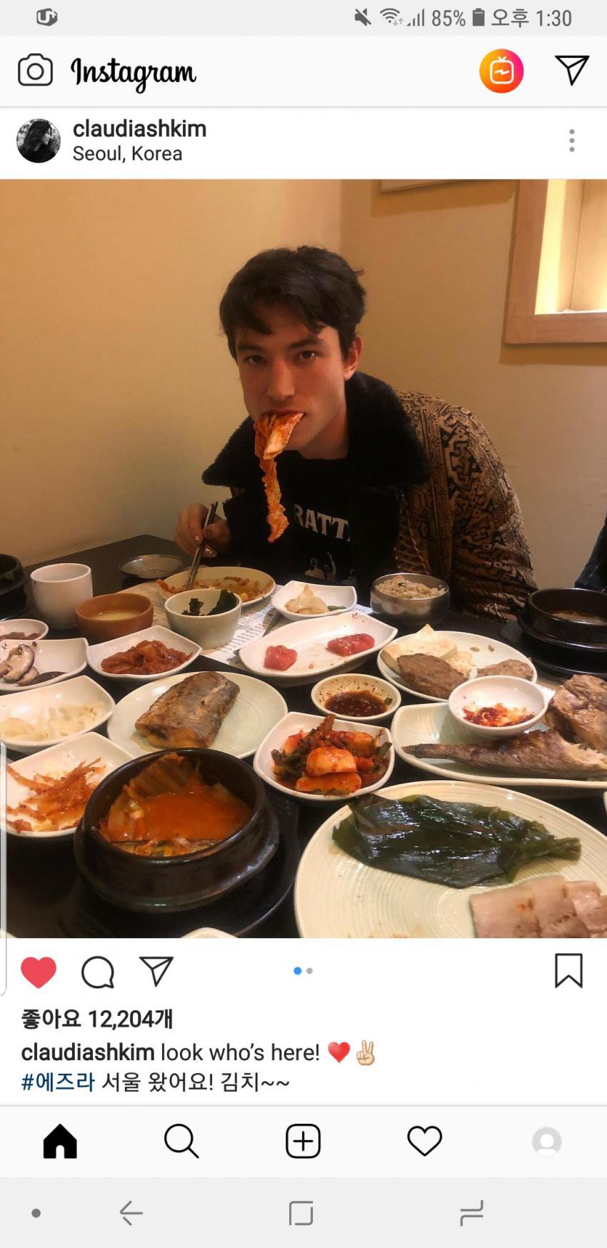 김치 물고 이상한 사진 찍는 에즈라 뮐러
