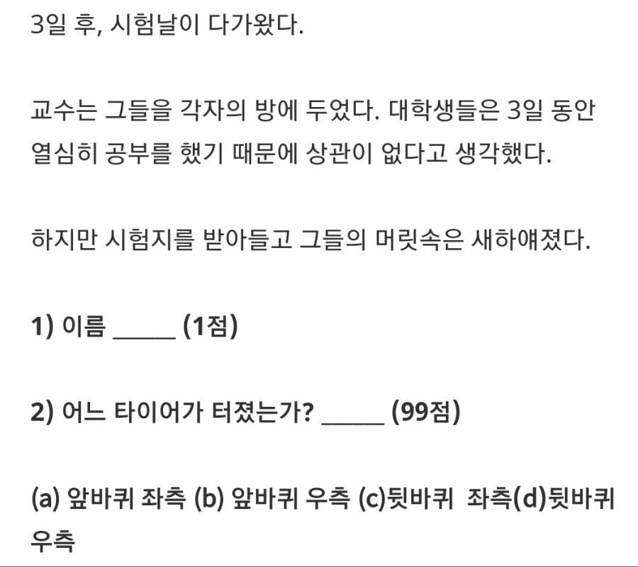 근데 뭐 교수님들 시험으로 학부생 조질려고 맘만 먹으면 멘탈바사삭 정도야 껌이죠.