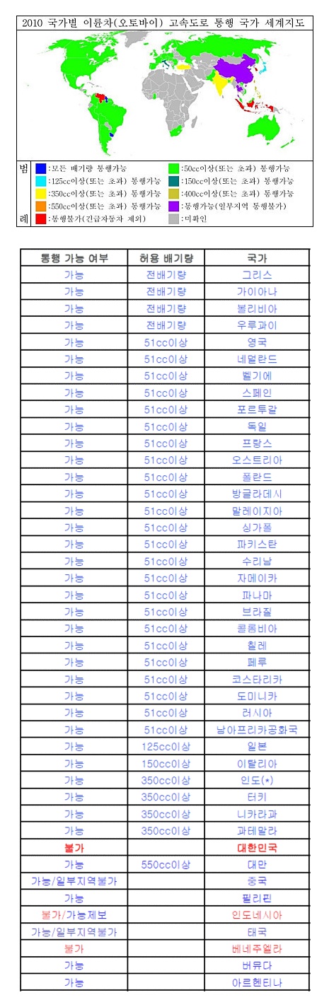 | Subject | 이륜차고속도로통행 가능국가 불가능국가.jpg |