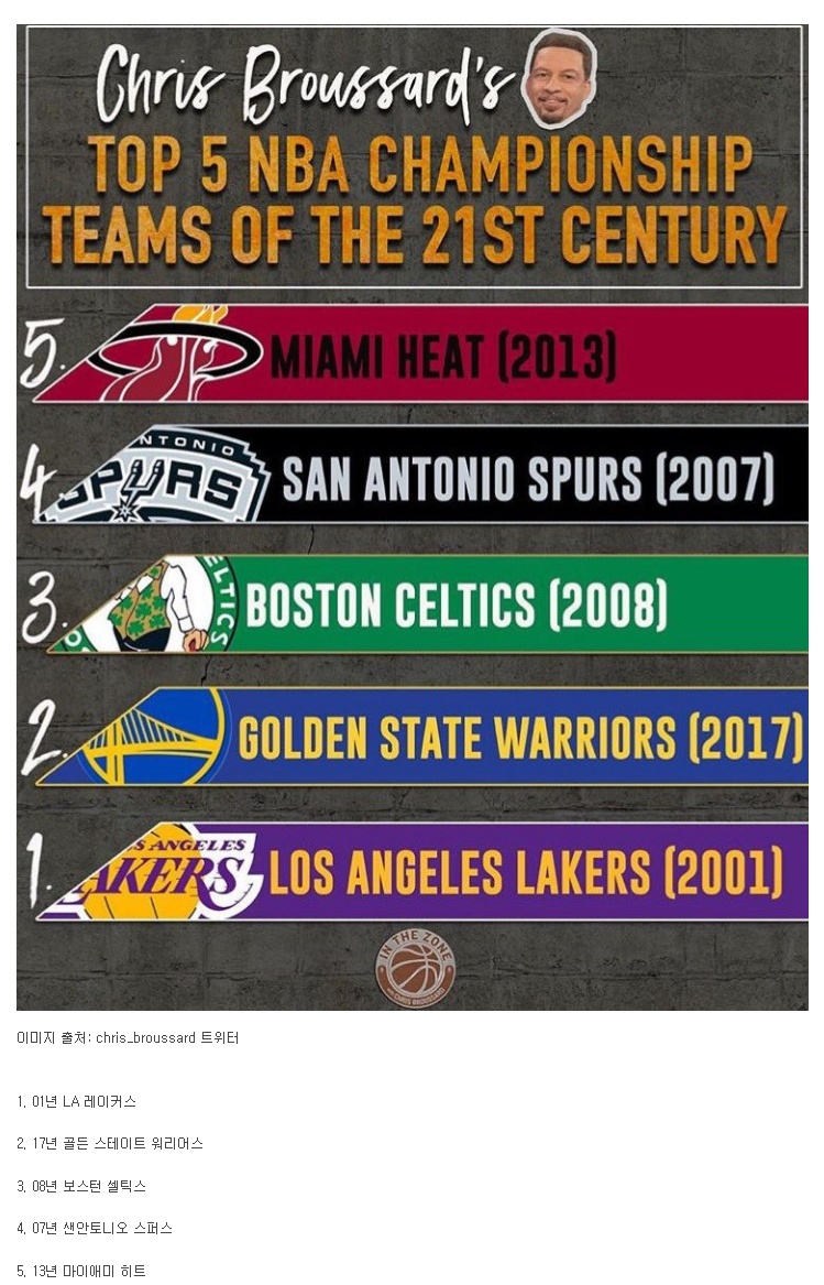NBA 21세기 챔피언팀중 Top 5