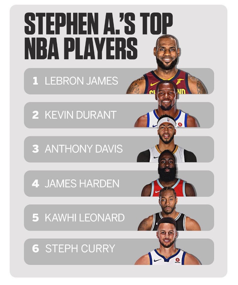 ESPN 전문가 선정, NBA 현역선수 순위 0