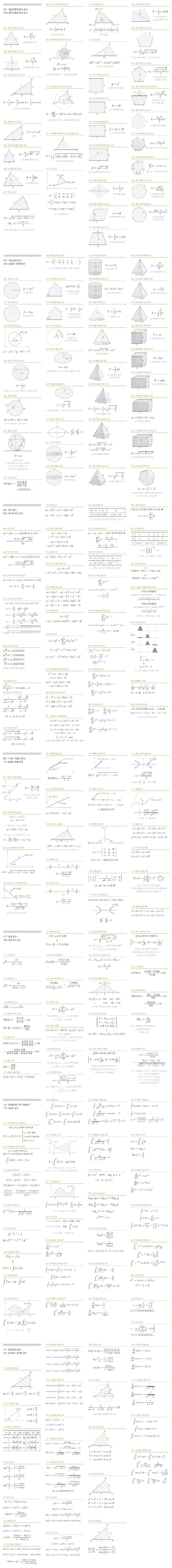 우리가 중고 6년 학창시절동안 배우고 익혔던 수학 공식 193개 모음
