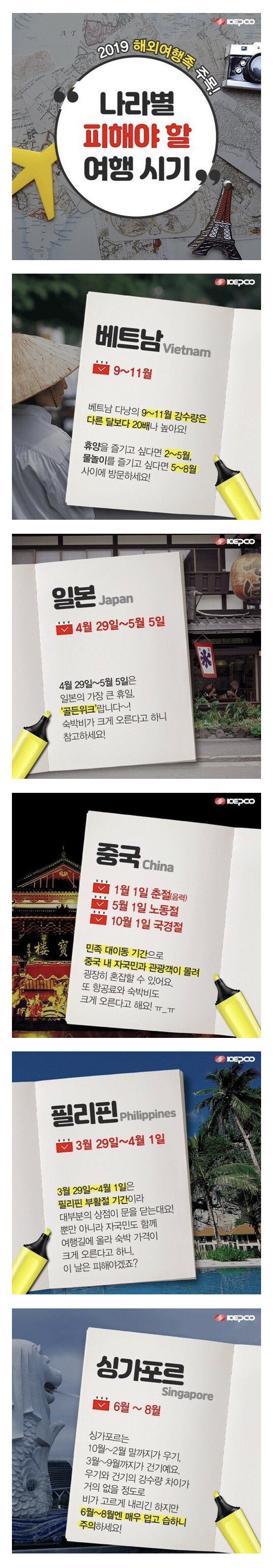 나라별 피해야 할 여행시기
