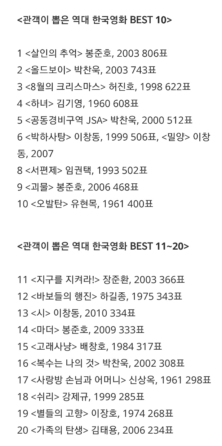 관객이 뽑은 역대 한국영화 BEST 20 0