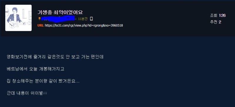 | Link #1 | https://gall.dcinside.com/mgallery/board/view/?id=nouvellevague&no=334514&exception_mode=recommend&page=1 |