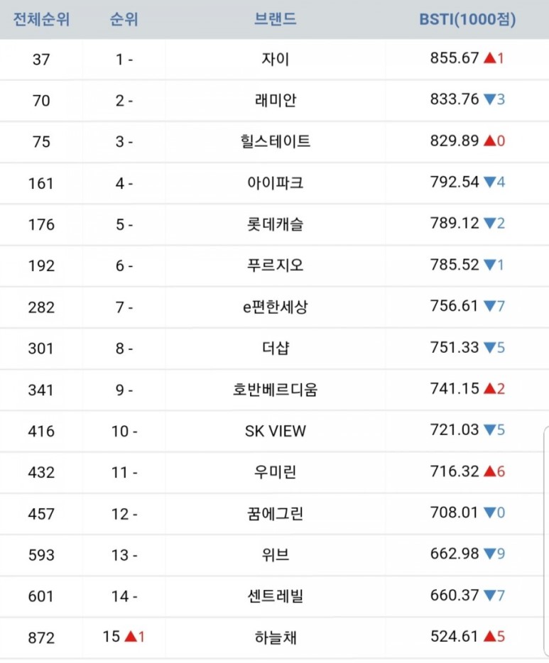 40147 19년 8월자 아파트 브랜드 순위.jpg 3 김치찌개 19/09/03 4313 0