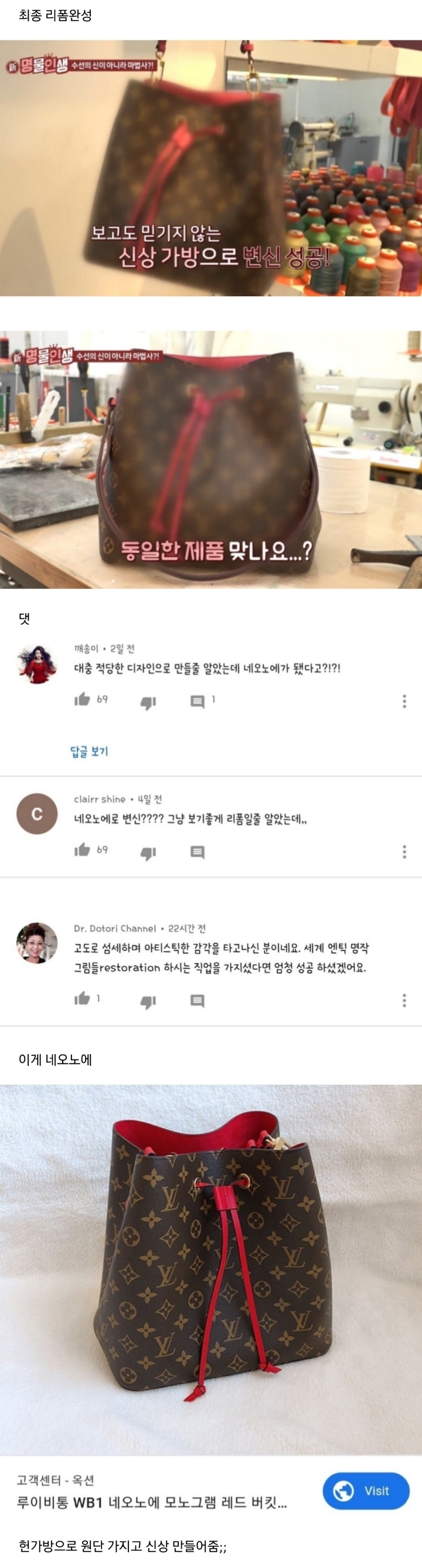 루이비통 정품 가방을 뜯어 신형 네오노에를 만드는 장인 이게 기술의 영역이냐 저작권 침해냐(짭 만들기) 논란이 많네요 ㅎㅎ 0