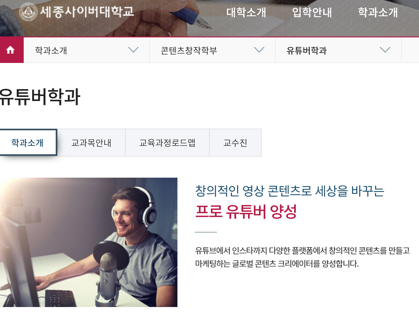 | Subject | 세종사이버대학교 유튜버학과 |