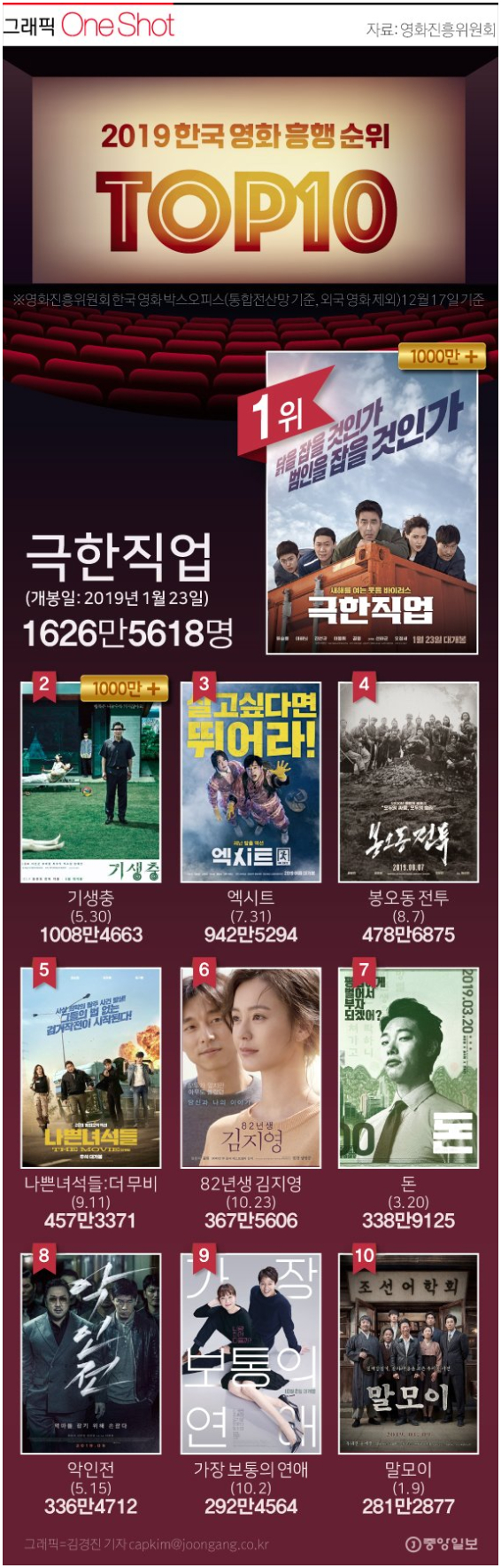 Subject   2019 한국영화 흥행 TOP10