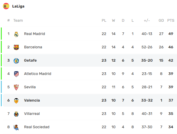 2020. 02. 08. Getafe 3 (Molina 67', Mata 87') - 0 Valencia