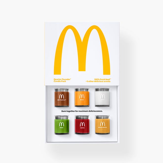 https://news.mcdonalds.com/aboutQuarter-Pounder-Fan-Club 가격과 수량 정보가 다 공개되지는 않았습니다만, 극소 수량이 풀릴 예정이라고 합니다. 번, 케쳡, 피클, 치즈, 양파, 100% 프레쉬 비프 향 6종 세트며, 모두 함께 태우면 최강의 맛(향)을 느낄 수 있다고 합니다?! 팬클럽이 있는지 몰랐습니다. 그나저나 감튀향은? 0