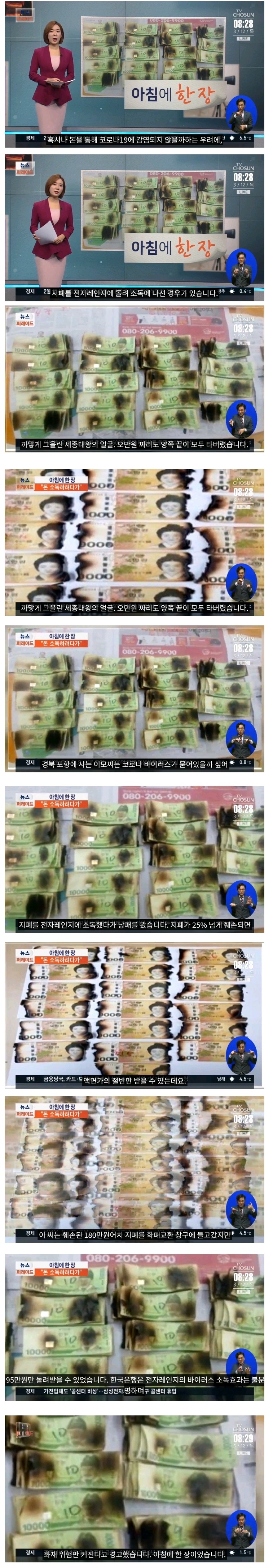 돈을통해 코로나 감염될까봐 지폐 전자레인지에 돌림 0