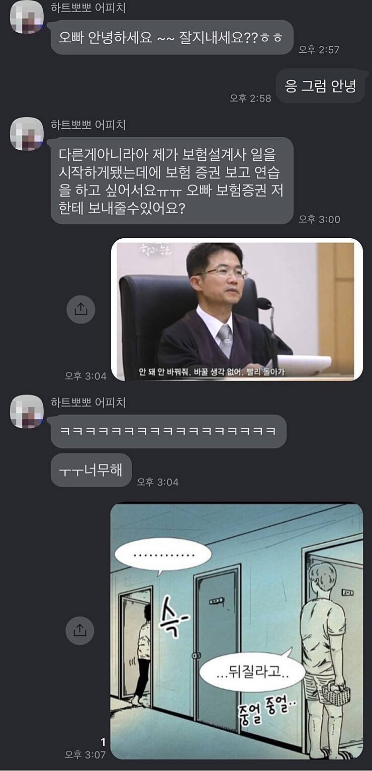 영업직하면 원래 주변 지인부터 시작하긴 하는데 아무리 그래도 저건 너무 염치가 없네 ㅋㅋㅋ 0