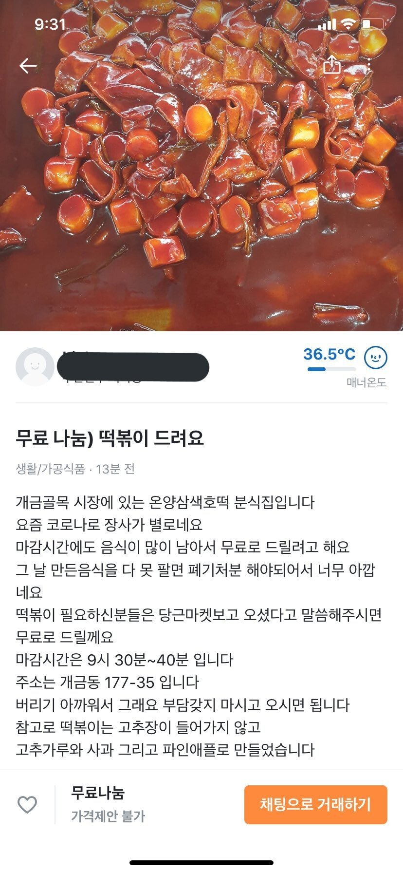 | Subject | 당근마켓에 올라온 떡볶이 나눔 |