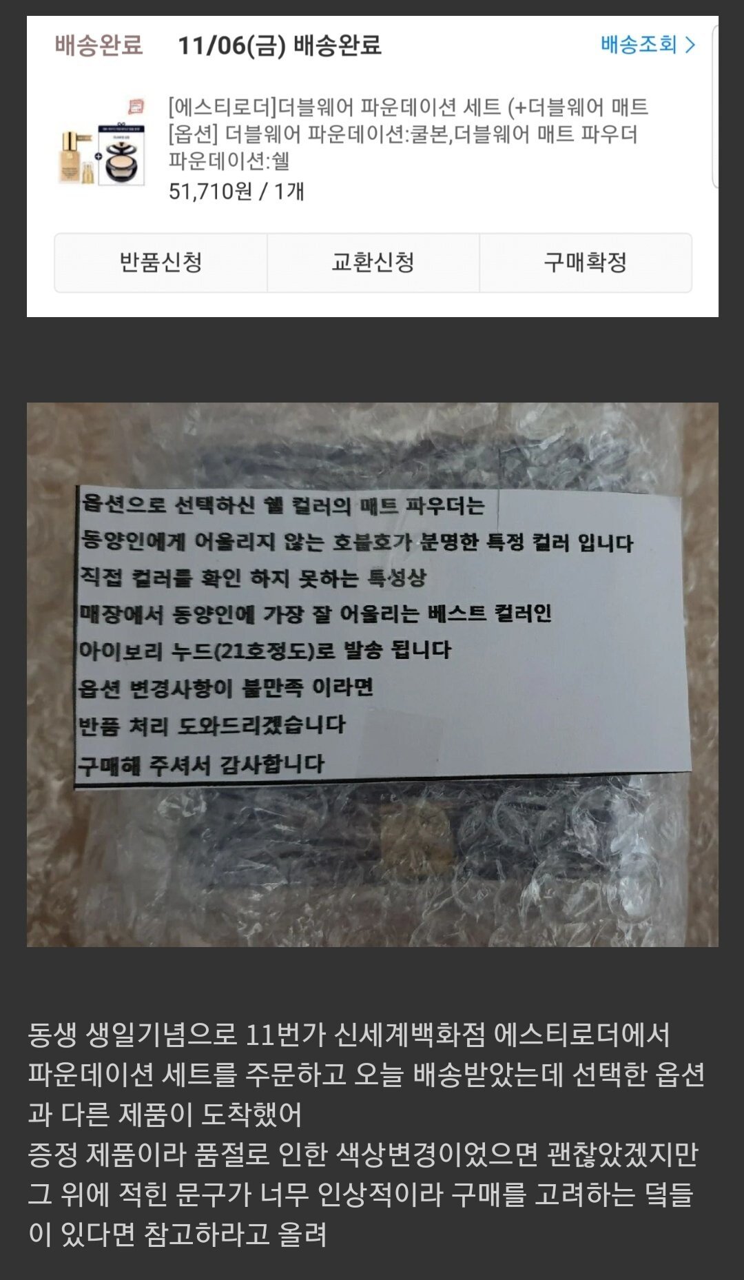| Subject | 어울리지 않는 제품을 주문하셔서 바꿔드렸습니다 |