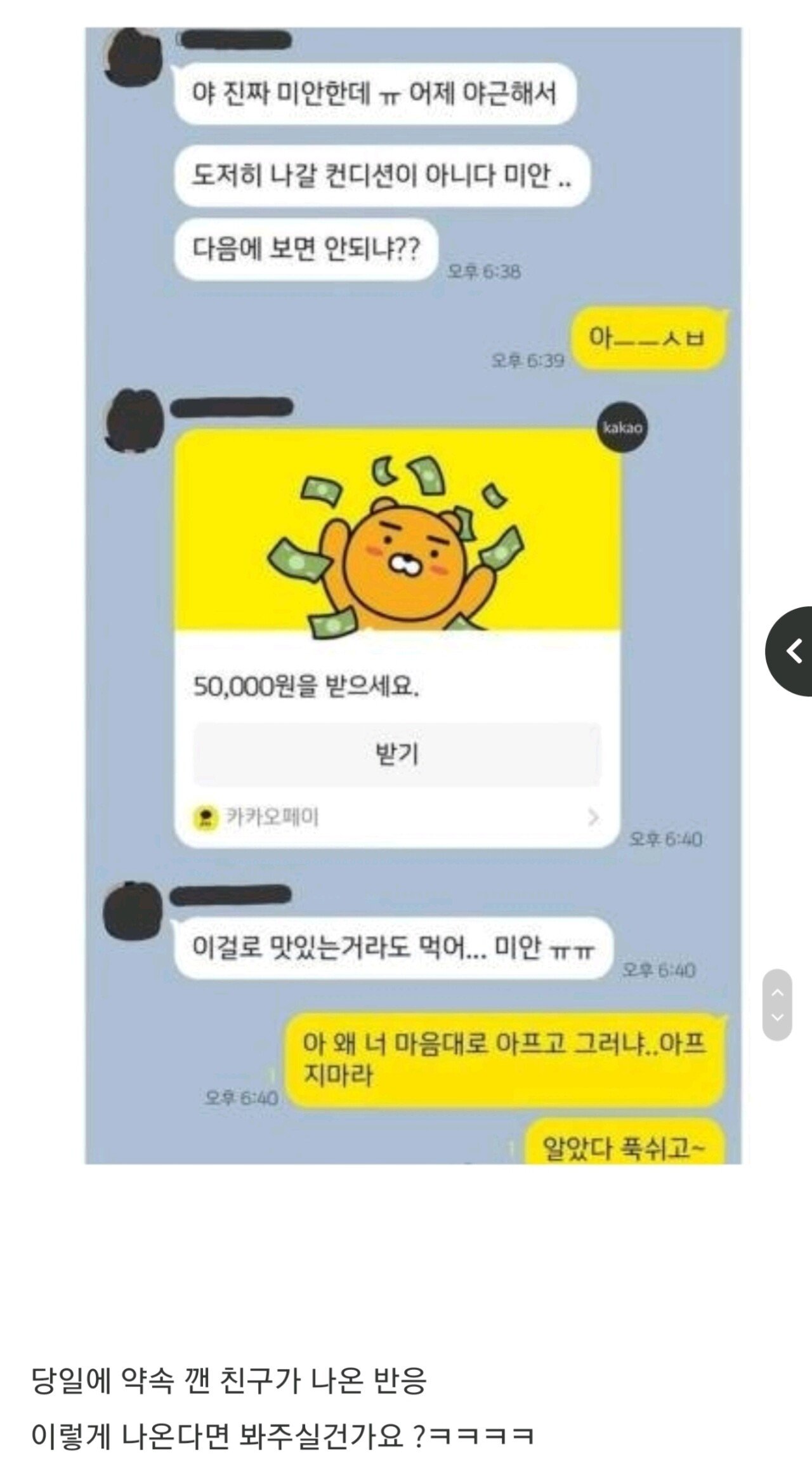 49290 당일에 약속 깬 친구가 나온 반응 9 swear 20/12/19 4951 0