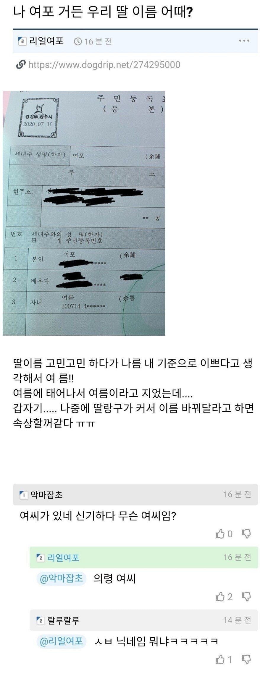 Subject   나 여포거든? 딸 이름 어때?