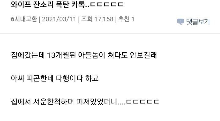 | Subject | 와이프 잔소리 폭탄 카톡 |