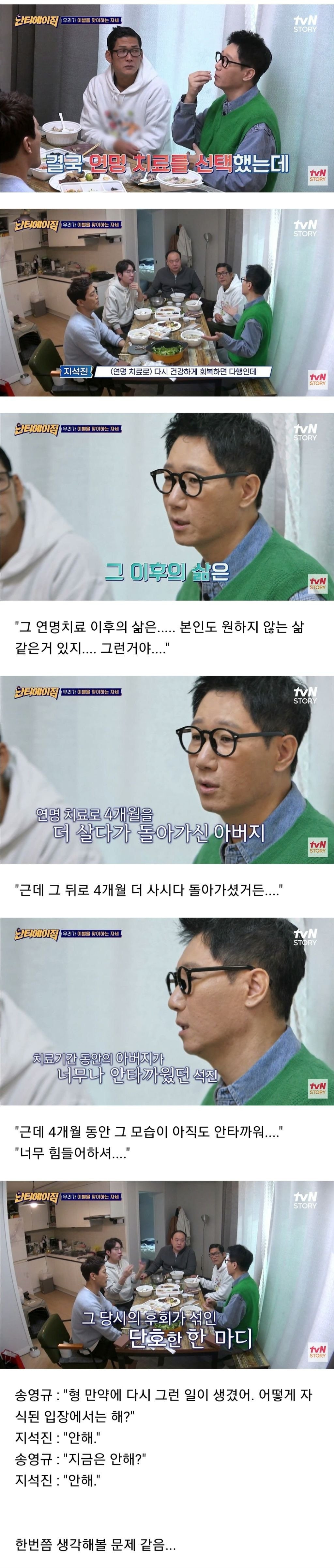 | Subject | 아버지 연명 치료 후회 하고 다신 그런 선택 안 한다는 지석진.jpg |